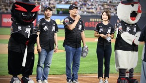 정찬해 수원화성문화제 추진위원회 공동위원장, KT 위즈 홈경기에서 수원화성문화제 성공 기원 시구
