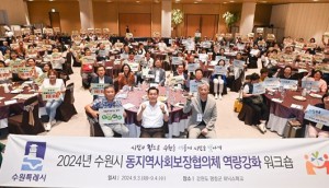 이재준 수원시장이 동 지역사회보장협의체 역량강화 워크숍에 참석해 특강을 하고, “수원새빛돌봄 사업에서 중요한 역할을 해주시는 지역사회보장협의체 위원님들에게 감사드린다”고 말했다.2024 수원시 동 지역사회보장협의체 워크숍은 3~4일 강원도 평창군 일원에서 열렸다. 이번 워크숍에는 지역사회보장협의체 위원 130여 명이 참석했다. 수원시 지역사회보장협의체 공공위원장인 이재준 시장은 3일 평창 휘닉스파크 포레스트홀에서 ‘함께 만드는 돌봄특례시, 수원’을 주제로 특강을 했다.이재준 시장은 “동 지역사회보장협의체 위원들은 어려운 이웃을 찾아내 적절한 복지자원을 발굴·연계하고, 지속해서 보살피는 중요한 역할을 하고 있다”며 “올해 상반기에 위기 이웃 6만 2663건을 발굴하며, 그들에게 희망을 선물했다”고 말했다.이어 “지난해 7월 마을형 통합돌봄 체계인 ‘수원새빛돌봄’을 시작했는데, 서비스를 받은 시민들의 만족도가 90%에 이른다”며 “새빛돌봄사업에서 큰 역할을 해주시는 지역사회보장협의체 위원님들에게 감사드린다”고 밝혔다.이종성 수원시 지역사회보장협의체 민간위원장은 “우리 지역사회보장협의체 위원들은 지역사회를 위해 일하고 있다는 것에 자긍심을 느낀다”며 “지역 주민의 어려움을 함께 나눌 수 있도록 위원님들과 함께 열심히 노력하겠다”고 말했다. 게시일 : 2024-09-05, 글쓴이 : 김홍범 기자