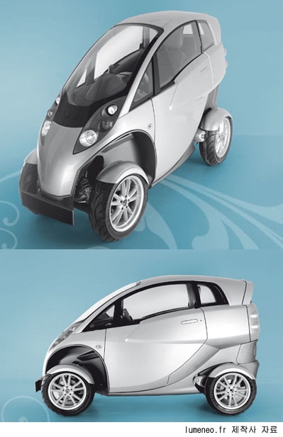 사진:프랑스의 자동차 회사가 제작 중인 너비 90cm 길이 240cm에 불과한 스마트한 자동차 '뤼메네오 스메라' 이 전기 자동차는 한번 충전으로 90마일 시속 80마일(129km)로 달릴 수 있다