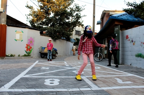 사방치기를 한참 바라보니 의외로 아이들의 신체적인 발달과 사고력을 키워주고 사회성을 길러주는 놀이 같다는 생각이 들었다. 이 놀이를 함으로써 균형감각과 사고력, 운동신경 등 아이들이 자라는데 있어 필요한 요소들이 적절히 놀이 속에 녹아있는 거였다. 그 속에는 외발서기 기능과 다리 근육을 발달시켜주고 발기능의 정확성과 순발력, 끈기를 길러줄 뿐만 아니라 정해진 질서와 규칙 등을 자연스럽게 터득함으로써 사회성을 길러주는 요소도 있어 요즘과 같은 아이들에게는 더욱 더 필요한 놀이는 아닐까 생각이 들었다.