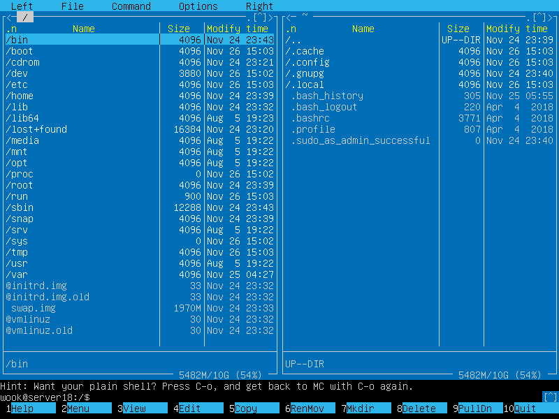우분투 서버에서 file manager 사용하기 - Midnight Commander