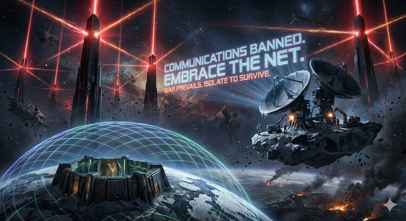 이들이 장악한 기존의 광역 통신 시스템은 더 이상 정보의 교류 수단이 아니라, 상층부의 의지를 하층부에 일방적으로 주입하는 통제 도구로 변질되었습니다. 실시간으로 쏟아지는 통신 신호들은 개별 행성의 판단력을 흐리게 만들고, 서로를 향한 적대감을 고취하며 전쟁의 방화쇠를 당기기 위한 도구로 소모되고 있습니다. 절대 탑들이 지휘하는 전장 시대에서 통신은 곧 예속을 의미하며, 신호가 연결되어 있는 한 모든 문명은 전쟁의 불길 속으로 강제로 끌려 들어갈 수밖에 없는 운명에 처해 있습니다.